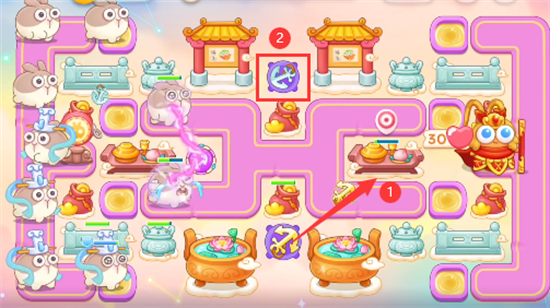 5、这一关会有不少的冰冻兔,注意给炮塔解冻。