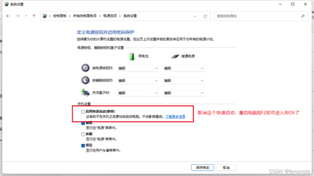 5. 关闭“启用快速启动”