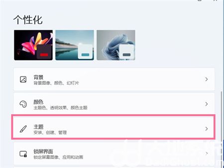 2.进入个性化设置后,点击“主题”该功能;