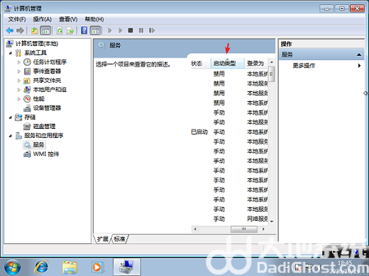 2、接着我们点击启动类型选项,这样子会把禁用服务排到最前面。