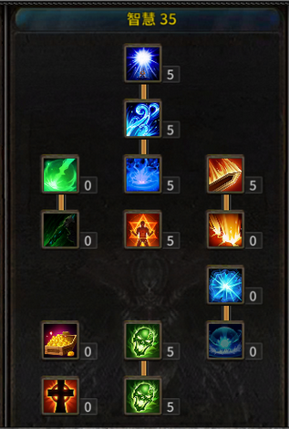 (2)天赋加点推荐:全智法推荐优先点天赋中“智慧”一栏,该板块中大部分天赋加成都与智力属性相关,百分比提高智力属性以及相关属性。在该栏中最下面的天赋——“幽魂熟练”叠加魔法师关键技能的伤害,最高可增加100%伤害。优先点出此天赋大大能提高伤害能力,堪称刷怪最强天赋!