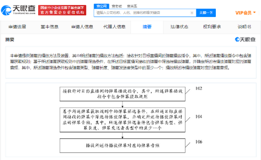 天眼查App显示,近日,上海哔哩哔哩科技有限公司申请的“弹幕的播放方法及装置”专利公布。