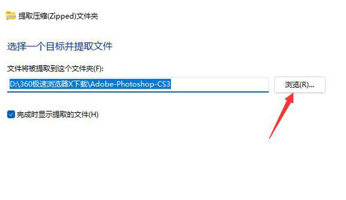 3、然后在其中点击浏览就可以选择需要解压到的位置。