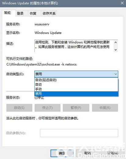 4、然后点击恢复,将“第一次失败”改为“无操作”,最后点击确定,这样就能彻底将自动更新禁用了。