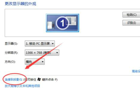 3、进入屏幕分辨率窗口后,在页面下方找到“连接到投影仪”选项。