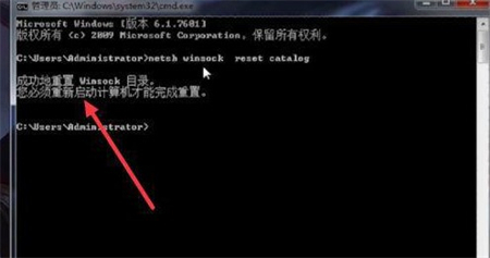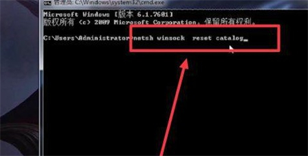 3、接着,系统会自动弹出来黑色页面哦。我们在黑色页面里输入netsh winsock reset catalog。