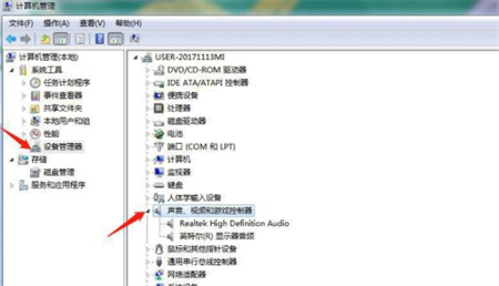 1、我们在桌面上右击【计算机】选择设备管理器,在设备管理器中找到“声音、视频和游戏控制器”的项目。