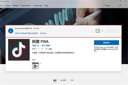 2、以安装抖音APK安卓程序为例,从搜索结果中找到“抖音pwa”并点击打开。