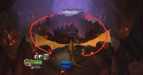四、巨龙会以下图的路线飞行两圈。1分30秒结束,刚好飞到初始位置,所有玩家会乘着降落伞落地,被巨龙技能打残血的小怪不会回血,我们在突袭事件结束后,清理小怪就会轻松不少。左右两条路都可以达到一号BOSS,所以只需要事先约好某一条路,猛砸巨龙的技能清理小怪即可。