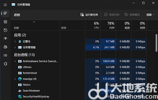 更新22H2后,任务管理器会变成全新的界面。将之前标签页式的显示方式变成了把各项功能集成到左侧显示。