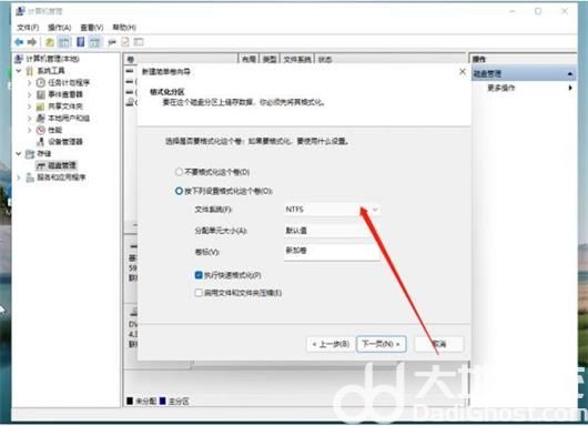 8、新建的简单卷磁盘格式选择“NTFS”即可。