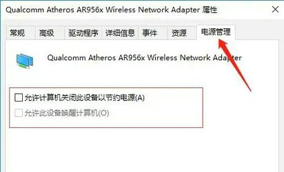 4、点击电源管理,去除选框里的对勾,点击确定。