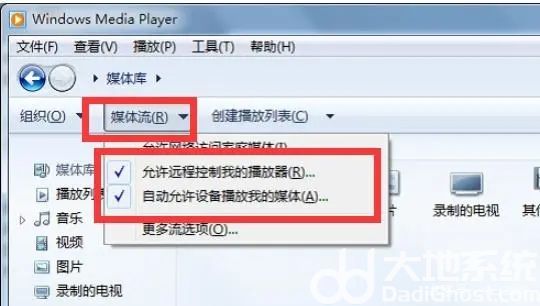 7、点击左上角“媒体流”,勾选如图所示的两个选项就可以投屏了。