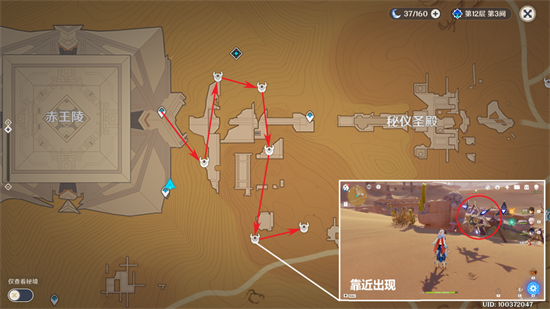 棱晶收集路线如图所示