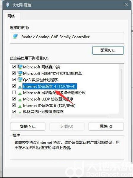 4、以太网 属性窗口,双击打开【Internet 协议版本 4 (TCP/IPv4)】;