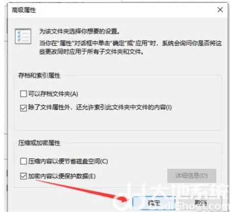 3、在高级属性窗口中,勾选加密内容以便保护数据,然后点击确定就可以了。