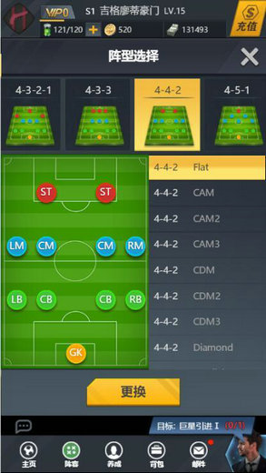 另外,玩家可以根据自己现有的球员进行阵容的调整,比如自己实力强的前锋较多时,可以选择4-4-2或者4-3-3阵容,发挥出自己球队最大的实力。