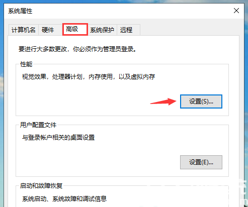 3、在高级选项卡下的性能选项内点击设置。