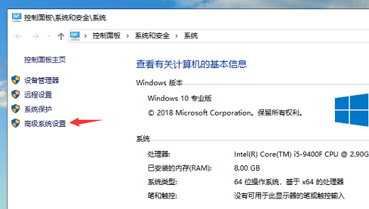2、点击窗口左侧的高级系统设置。