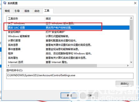 2、进去系统配置之后,点击工具,选择更改UAC设置,点击下方的启动,如下图所示: