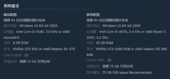 显卡: NVIDIA GTX 1060 6GB or AMD Radeon RX 580 8GB