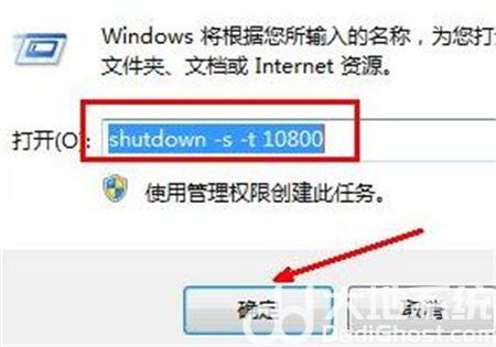 2、在框内输入定时关机的命令,我们想让电脑在1个小时以后关机,那么可以这么输入:shutdown -s -t 3600 然后点击确定即可开始关机倒计时,如果想让系统在2小时关机则可以将 3600 修改成 7200 ,以此类推,如图: