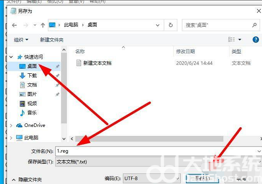 3、选择保存路径到桌面文件名 这里填写1.reg 自己知道就可以了后缀名必须是.reg ,在点击保存。
