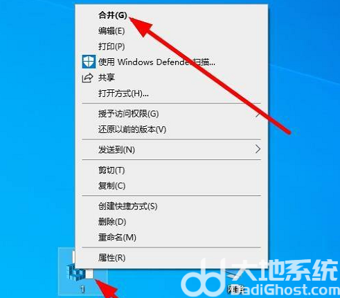 4、在到桌面选择刚才创建的那个文件右击选择合并。