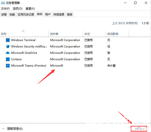 4、最后,选择不需要的启动项,将状态修改为禁用即可