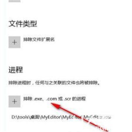 4、点击添加排除项之后在出现的界面中选择想要添加的白名单文件类型,有文件和进程,点击加号准备进行添加。