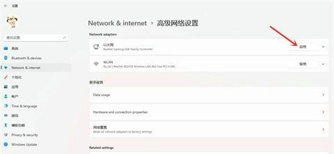3、再进入高级网络设置之后,我们找到想要开启的WLAN,在右侧选择【启用】即可。