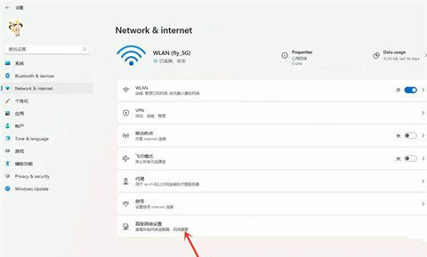 2、这时我们会进入网络和internet设置,选择其中的【高级网络设置】。