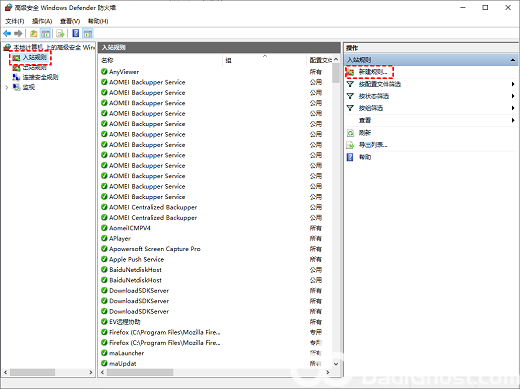步骤2. 在窗口中单击左侧的“入站规则”选项,然后在右侧选择“新建规则”。