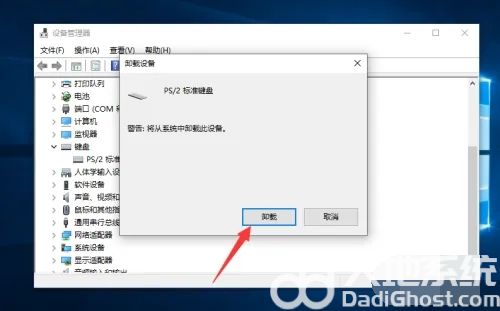 5.win10系统将弹出卸载设备警告窗口,继续点击卸载按钮,等待重启。