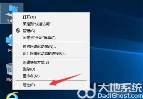 1.在此电脑图标上方点击右键,并选择属性菜单项进入。