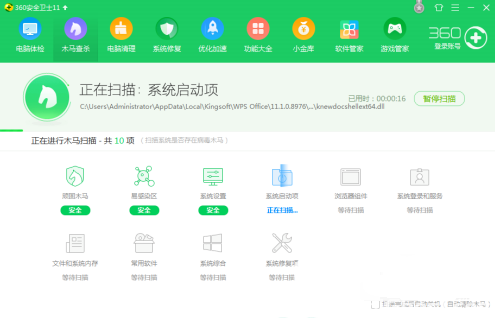 3、扫描,电脑清洁。