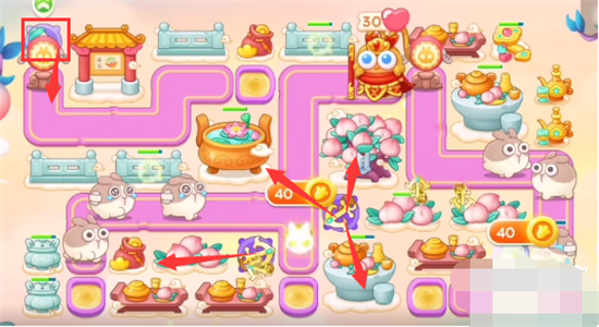 1、本关能够使用的炮塔是:毒针、闪电炮、船锚、导弹,这一关我们只能用船锚玩,注意用导弹放空。