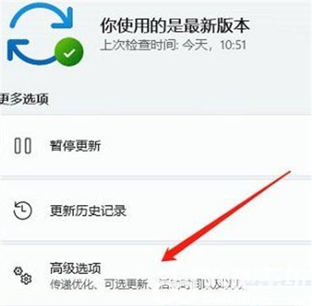 3、接着在更多选项下,点击【高级选项(传递优化、可选更新、活动时间以及其他更新设置)】;