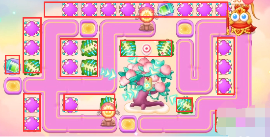 1、本关能够使用的炮塔是:毒针、闪电炮、魔法球、鱼刺、雷达,这一关我们选择魔法球和鱼刺输出。