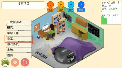 1、在“游戏开发大亨”主界面中,点击左侧的“员工”按钮。