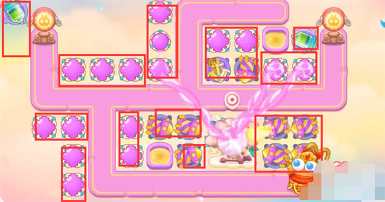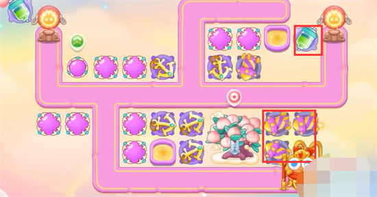 1、本关能够使用的炮塔是:毒针、魔法球、船锚、导弹,这一关能用的输出只有船锚和魔法球。