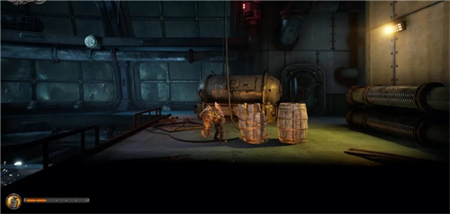 最后一张需要找一些,而且有前置条件。必须条件是我们已经遇到过阿飞了,之后可以在军工厂区域图中的位置,来到这里之后打破木桶救出阿飞,能得到枪械蓝图残页3。