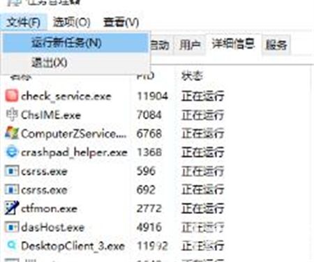 3、在任务管理器中点击“文件”—“运行新任务”。