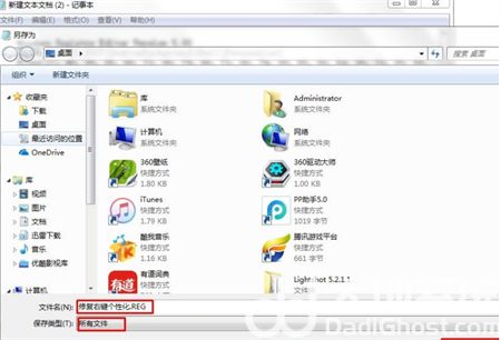 修复个性化.REG (保存时文件类型选择所有文件)