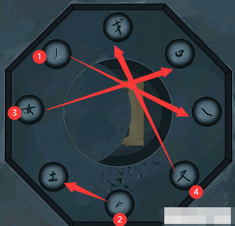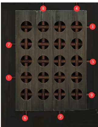 10、最后一个谜题如下图所示,需要以棍子压住的顺序来解谜。