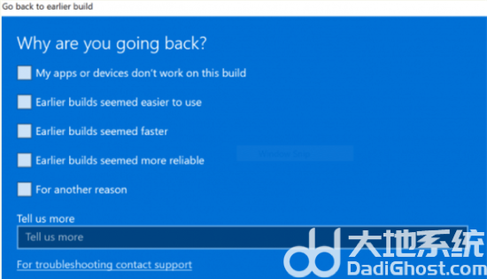 3.可以指定要返回Windows10或旧版本的Windows的原因,选择任何原因,然后单击下一个。