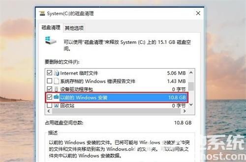 (2)找到“以前的windows安装”选项,勾选它,点击确定清理。
