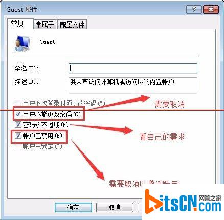 4、可以看到,guest用户是禁用的,这时候双击“guest”,弹出如下界面