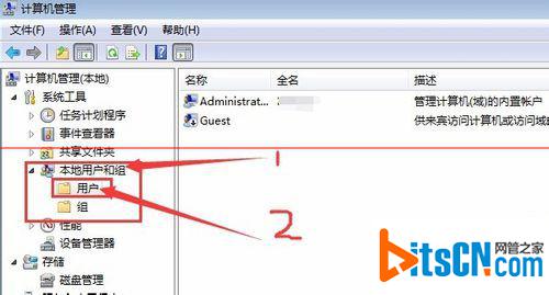 2、双击“本地用户和组”,然后双击其下的“用户”