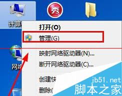 1、鼠标右击win7系统桌面上的“计算机”图标,选择“管理”打开“计算机管理”窗口;